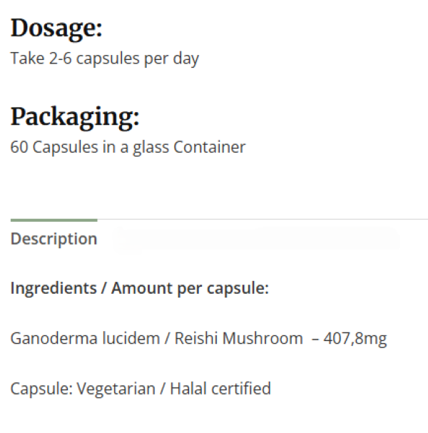 Ganoderma lucidem / Reishi Mushroom  – 407,8mg